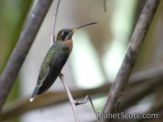 The band-tailed barbthroat is a medium-sized hummingbird that is found from southeastern Guatemala and Belize to western Ecuador and western Venezuela.