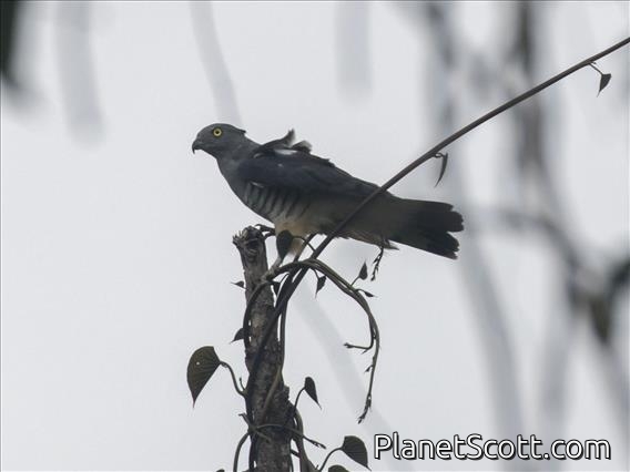 The Pacific baza, also known as the crested hawk, crested baza, and Pacific cuckoo-falcon, is a slender, medium-sized species of hawk in the family Accipitridae. It is mostly grey, brown, and white coloured and grows to a length of 35–46 centimetres (14–18 in). It is an omnivore and usually does not migrate. The breeding season for the species lasts from September to at least February, during which time specimens commonly fly and vocalise for display. It lives in Australia, Indonesia, Papua New Guinea, Solomon Islands, and East Timor, in forests, savannas, and freshwater bodies. The International Union for Conservation of Nature lists it as a least concern species.