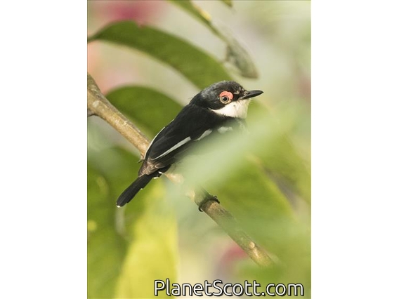 The brown-throated wattle-eye, also known as the common wattle-eye or scarlet-spectacled wattle-eye, is a small, insectivorous passerine bird. The wattle-eyes were previously classed as a subfamily of the Old World flycatcher family Muscicapidae, but are now usually separated from that group.