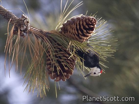 The white-headed woodpecker is a non-migratory woodpecker that resides in pine forests of the mountains of western North America.