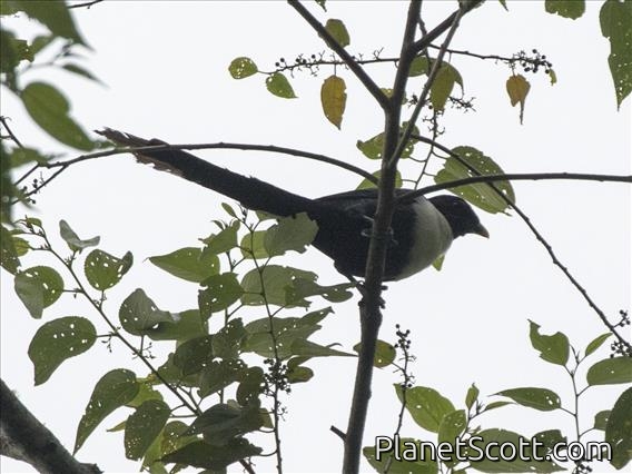 The white-necked myna is a large, long-tailed species of starling in the family Sturnidae. Due to its superficial resemblance to a magpie, it has been referred to as the Celebes magpie or Sulawesi magpie in the past. It is endemic to forests on Sulawesi and adjacent smaller islands in Indonesia. There are two subspecies: the nominate from the southern part of Sulawesi has a yellow-tipped bill, and torquata from the northern part of the island has an all-black bill.