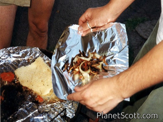 There were several first-time bug eaters in attendance. All who tried the meal worms seemed very happy with the experience, although no one ate more than one, with the exception of the organizer, SeƱor Scott, who was very spiffily costumed as an entomologist. And, despite my initial skepticism, I ate my first bug (or half, anyway); I am a now a de facto B.A.B.E.S. member and look forward with watering mouth to the next society event. Hope to see you there!