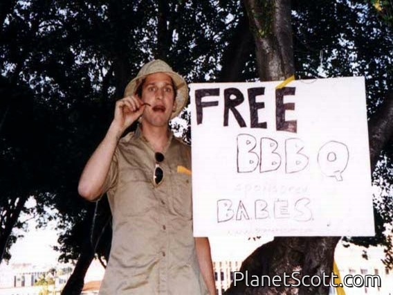 Dolores Park was overflowing with potential B.A.B.E.S.members - so much so that families had staked out all of the picnic tables in the main area (hope you weren't looking for us there!). We set up and posted the "Free BBBQ" (the extra "B" stands for "BUG") sign at the tables under a tree on the hillside, overlooking the Japanese drumming event that was also going on. We started out as a cozy group, but the aroma of barbecuing meal worms ( and a large sign promising B.A.B.E.S.!) soon drew much interest from passersby. Strangely, vegetarians seemed to be heavily represented among the attendees - which meant, of course, more bugs for everyone else!