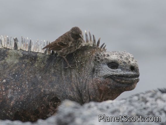 The marine iguana, also known as the sea iguana, saltwater iguana, or Galápagos marine iguana, is a species of iguana found only on the Galápagos Islands (Ecuador). Unique among modern lizards, it is a marine reptile that has the ability to forage in the sea for algae, which make up almost all of its diet. Marine iguanas are the only extant lizard that spends time in a marine environment. Large males are able to dive to find this food source, while females and smaller males feed during low tide in the intertidal zone. They mainly live in colonies on rocky shores where they bask after visiting the relatively cold water or intertidal zone, but can also be seen in marshes, mangrove swamps and beaches. Large males defend territories for a short period, but smaller males have other breeding strategies. After mating, the female digs a nest hole in the soil where she lays her eggs, leaving them to hatch on their own a few months later.