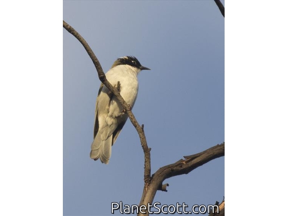 Gilbert's honeyeater, also known as the Swan River honeyeater or western white-naped honeyeater, is a passerine bird of the honeyeater family Meliphagidae native to southwestern Australia. A mid-sized honeyeater, it is olive-green above and white below, with a black head, nape and throat and a white patch over the eye and a white crescent-shaped patch on the nape. The bill is brownish-black and the eyes a dull red. The sexes have similar plumage.