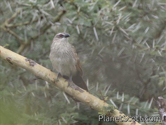 The white-browed coucal or lark-heeled cuckoo, is a species of cuckoo in the family Cuculidae. It is found in sub-Saharan Africa. It inhabits areas with thick cover afforded by rank undergrowth and scrub, including in suitable coastal regions. Burchell's coucal is sometimes considered a subspecies.