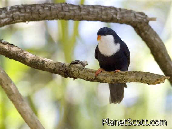 The blue lorikeet is a small lorikeet from French Polynesia and the Cook Islands. It is also known as the Tahiti lorikeet, violet lorikeet, Tahitian lory, blue lory, nunbird, and the indigo lory. It was formerly found on 23 islands around Tahiti, but is now restricted to perhaps eight islands: Aitutaki, Apataki, Arutua, Kaukura, Manuae, Maupihaa, Motu One, Rangiroa, and possibly Manihi and Manuae. Its plumage is mainly dark blue and it has a white area over its upper chest, throat and face. The first captive breeding in the UK was by the Marquess of Tavistock in the 1930s. He was awarded a silver medal by the Foreign Bird League for this achievement.
