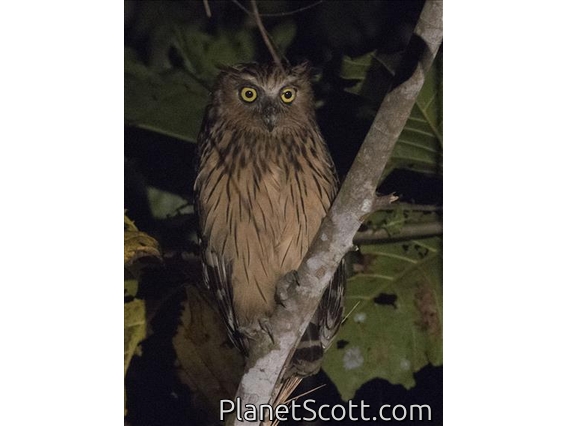 The buffy fish owl, also known as the Malay fish owl, is a fish owl in the family Strigidae. It is native to Southeast Asia and lives foremost in tropical forests and wetlands. Due to its wide distribution and assumed stable population, it is listed as Least Concern on the IUCN Red List since 2004.