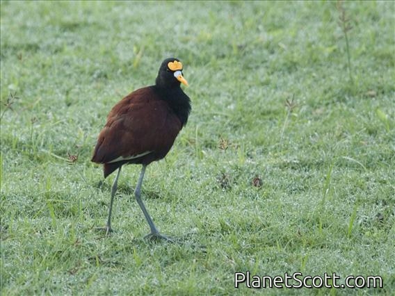 The northern jacana or northern jaçana is a wader which is known as a resident breeder from coastal Mexico to western Panama, and on Cuba, Jamaica and Hispaniola in the Caribbean. It is sometimes known to breed in Texas, United States, and has also been recorded on several occasions as a vagrant in Arizona. The jacanas are a group of wetland birds, which are identifiable by their huge feet and claws, which enable them to walk on floating vegetation in the shallow lakes that are their preferred habitat. In Jamaica, this bird is also known as the 'Jesus bird', as it appears to walk on water.