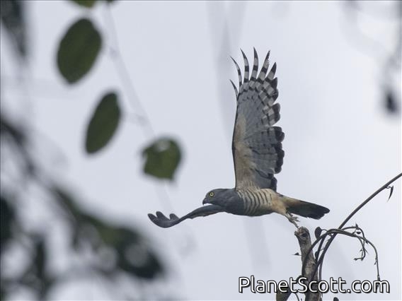The Pacific baza, also known as the crested hawk, crested baza, and Pacific cuckoo-falcon, is a slender, medium-sized species of hawk in the family Accipitridae. It is mostly grey, brown, and white coloured and grows to a length of 35–46 centimetres (14–18 in). It is an omnivore and usually does not migrate. The breeding season for the species lasts from September to at least February, during which time specimens commonly fly and vocalise for display. It lives in Australia, Indonesia, Papua New Guinea, Solomon Islands, and East Timor, in forests, savannas, and freshwater bodies. The International Union for Conservation of Nature lists it as a least concern species.