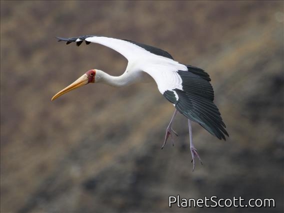 Yellow-billed Stork (Mycteria ibis) - In Flight