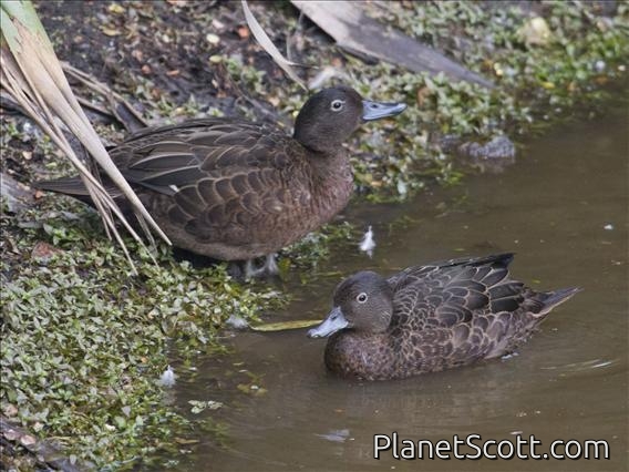 The brown teal is a species of dabbling duck of the genus Anas native to New Zealand. For many years it had been considered to be conspecific with the flightless Auckland and Campbell teals in Anas aucklandica; the name "brown teal" has also been largely applied to that entire taxon. Common in the early years of European colonisation, the "brown duck" was heavily harvested as a food source. Its numbers quickly fell, especially in the South Island, and in 1921 they became fully protected. Captive breeding and releasing into predator-controlled areas has seen good localised populations re-introduced around the country in recent years.