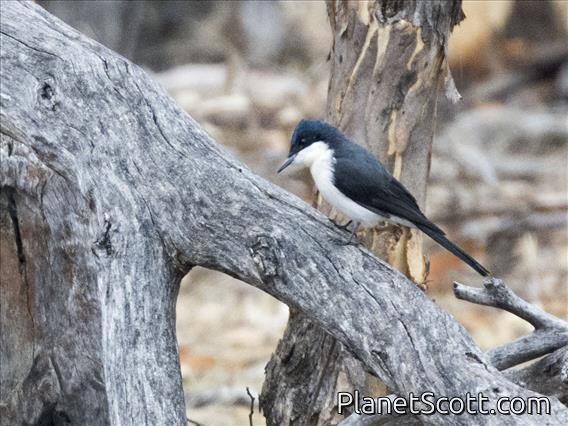 The restless flycatcher or restless myiagra is a passerine bird in the family Monarchidae; it is also known as the razor grinder or scissors grinder because of its distinctive call. It is a native of eastern and southern Australia. Populations in New Guinea and northern Australia, which were at one time considered to be a subspecies, are now accepted as a separate species, the paperbark flycatcher. It is a small to medium-sized bird and has similar colouring to the willie wagtail.