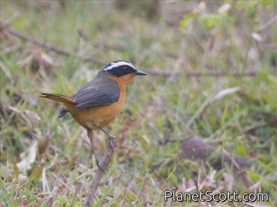 Mount Elgon National Park, KenyaNot 100% sure on ID. Did not get a great look at it but the tail and breast appeared orange. White supercilliary. Could have been another type of robin-chat.× -