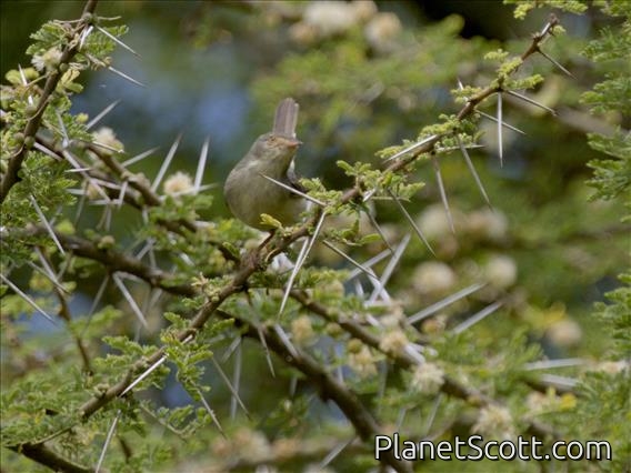 The buff-bellied warbler is a species of bird in the family Cisticolidae. It is monotypic within the genus Phyllolais. It is found in Cameroon, Central African Republic, Chad, Democratic Republic of the Congo, Eritrea, Ethiopia, Kenya, Nigeria, Rwanda, Sudan, Tanzania, and Uganda, where its natural habitats are subtropical or tropical dry forest, dry savanna, and subtropical or tropical dry shrubland.