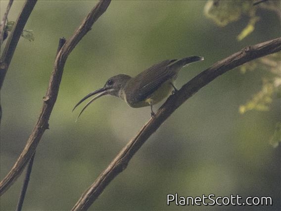 The little spiderhunter is a species of long-billed nectar-feeding bird in the family Nectariniidae found in the moist forests of South and Southeast Asia. Unlike typical sunbirds, males and females are very similar in plumage. They are usually seen in ones or twos and frequently make a tzeck call. They are most often found near flowering plants where they obtain nectar.